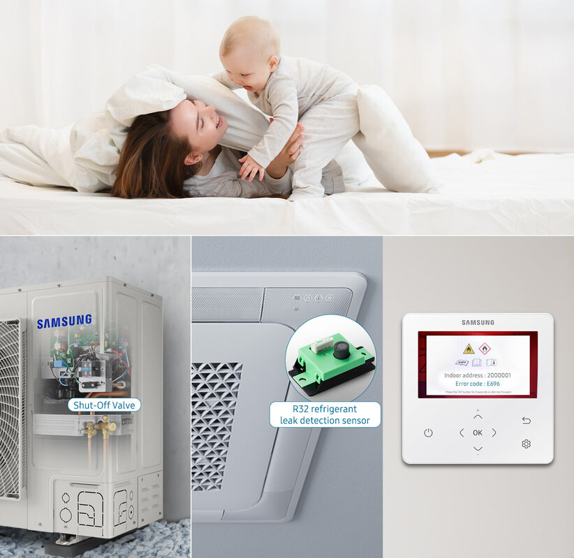 Die DVM S Mini R32 erfüllt die Anforderungen der Norm IEC 60335-2-40. Im Falle eines Kältemittellecks wird automatisch ein optisches und akustisches Warnsignal ausgelöst – für mehr Sicherheit im Betrieb und eine schnellere Reaktionszeit. - SmartThings-kompatibel: Wi-Fi serienmäßig integriert