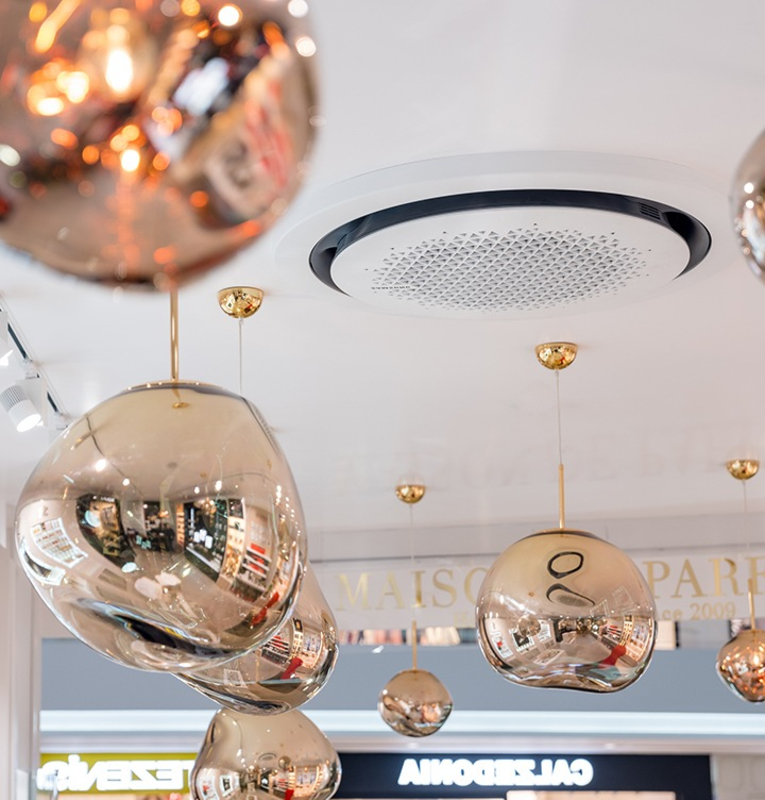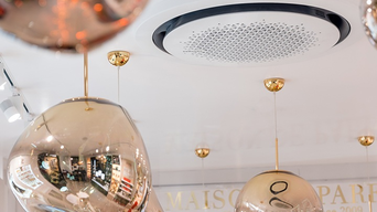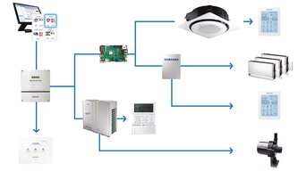 Das HVM-System von Samsung ist eine luftgekühlte Wärmepumpe, die Wasser als Medium zur Klimaregelung nutzt. Über ein hydraulisches Leitungssystem wird das Gerät mit verschiedenen Inneneinheiten verbunden – beispielsweise mit der 360° Kassette oder einer Einweg-Kassette. So lassen sich einzelne Zonen im Gebäude gezielt beheizen oder kühlen – komfortabel, effizient und bedarfsgerecht.