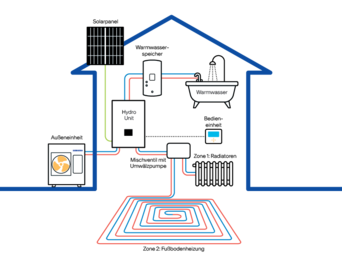 Split-Wärmepumpe mit Drittanbieter-Warmwasserspeicher